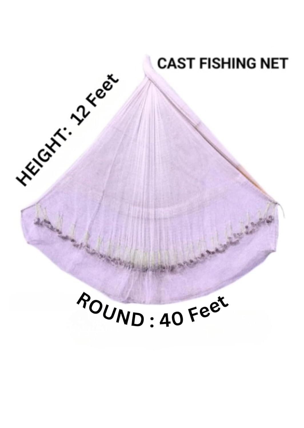 CAST Fishing NET Height: 12 Feet, Hand Throwing Fishing Pure Nylon Net Jaal Casting Easy Fishing Bait Catch/Trap Netting Cast Mesh, Round: 50 Feet, Mesh:2 Finger, Weight 4kg (White)